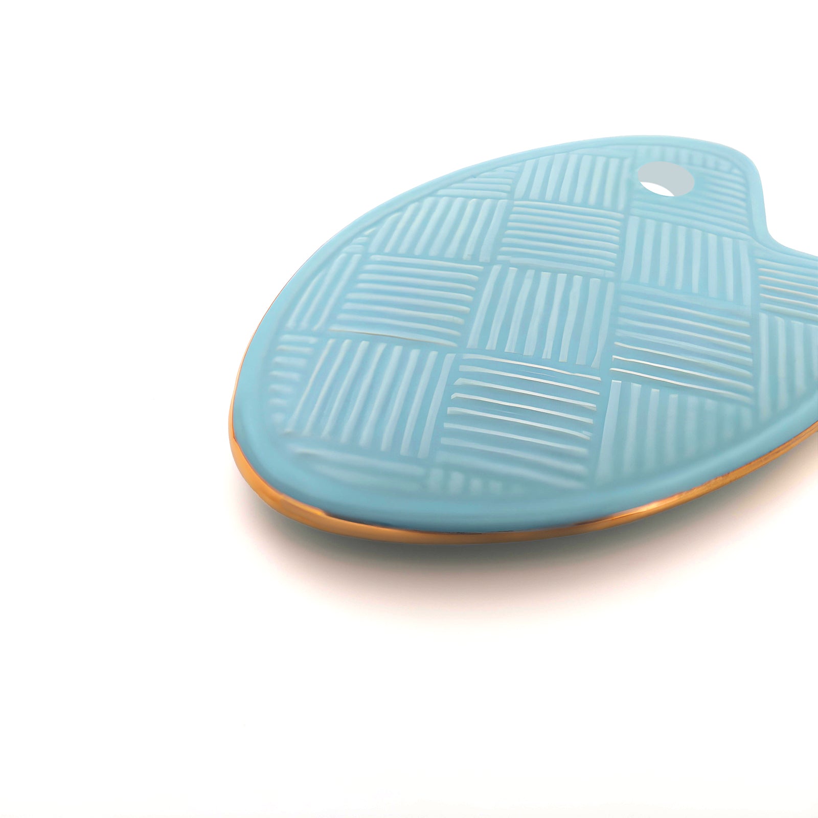 The Sunshine Ceramic Guasha Stone is adorned with a stylish gold border that adds a touch of sophistication and elegance.